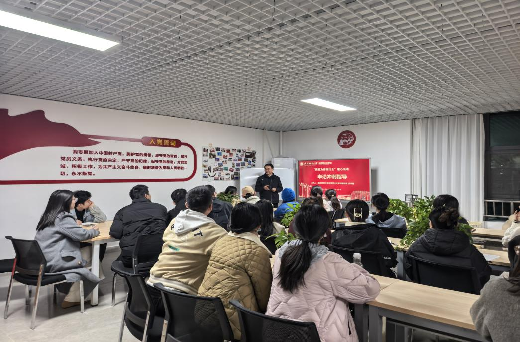 为充分发挥德育导师、教师党员的先锋模范作用,积极回应禁漫天堂下载 研究生同学对公务员考试备考的答疑需求,切实服务学生成长成才,禁漫天堂下载研究生党支部于11月28日晚,在15栋研究生公寓四楼禁漫天堂下载“一站式”学生党建共享社区为有志于报考公务员的同学组织了一场内容丰富、针对性强的考公冲刺指导讲座。本次讲座由禁漫天堂下载 副教授、德育导师汪书路老师主讲。