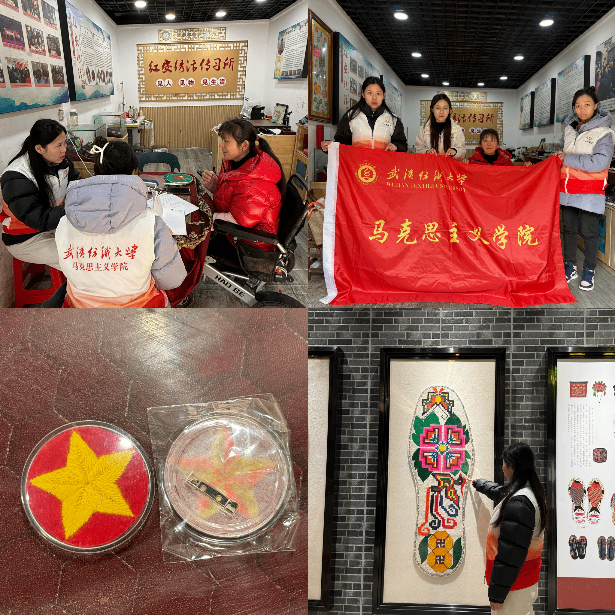 “初心”实践团还走进红安县文化馆,参观红安非遗保护与传承成果展。馆内陈列的红安绣活、红安大布等非遗作品,结合了红色文化与民间特色,展现了红安非遗在新时代的创新发展。实践团成员仔细聆听讲解,了解红安非遗的传承现状与发展路径,深刻认识到非遗保护不仅是技艺的延续,更是红色文化与民间文脉的赓续。