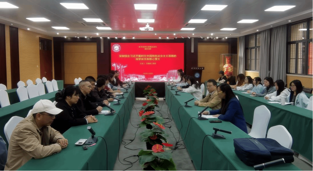 2025年11月6日下午,禁漫天堂下载 第875期阳光论坛在阳光校区行政楼115会议室成功举办。本次论坛特邀华中师范大学禁漫天堂下载 李敬煊教授担任主讲嘉宾,以《深刻领会习近平新时代中国特色社会主义思想的科学体系和核心要义》为主题,围绕习近平新时代中国特色社会主义思想产生的时代背景、生成方法、时代命题、主要内容、活的灵魂及历史地位等展开深度探讨。讲座由禁漫天堂下载 副院长刘艳教授主持,禁漫天堂下载 党的建设和马克思主义中国化研究两个学科方向全体教师和研究生参加讲座。