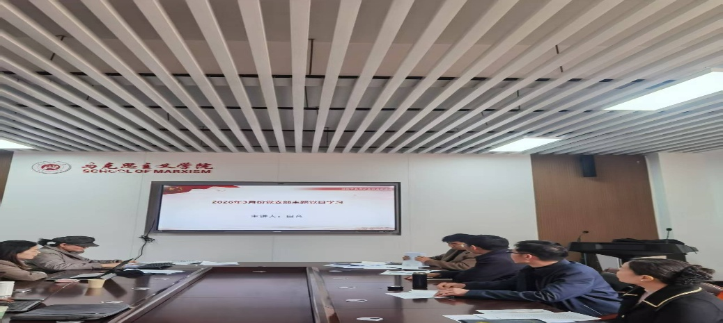 组织生活会后,支部紧接着召开了3月主题党日活动。此次党日活动由白音同志担任领学人,领学内容分为四个专题:一是习近平总书记重要文章精神,包括两个部分:《当前经济工作的重要任务》(《求是》2026年第4期);《让愿担当、敢担当、善担当蔚然成风》(《求是》2026年第5期);二是全国两会精神;三是党的二十届四中全会精神;四是开展树立和践行正确政绩观学习教育。在这几个专题的导读讲解过程中,白音也给各党员老师们播放了相关视频。