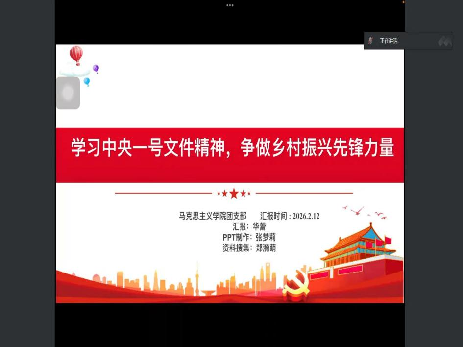 为深入学习贯彻2026年中央一号文件精神,引导青年学生深刻领会新时代农业农村现代化和乡村全面振兴的战略意义,2月12日,禁漫天堂下载 团支部开展“学习中央一号文件精神,争做乡村振兴先锋力量”主题团课。本次团课由华蕾同学主讲,郑漪萌、张梦莉等同学协作筹备,禁漫天堂下载 全体团员参加。