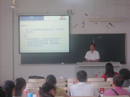 夏火松教授为全院教师作了题为教学与科学研究的探讨--哲学社会科学知识管理的视角的报告。夏教授从教学、科学研究和社会服务的关系为出发点,结合自身在科研申报方面的体会指出,高等教育中教学是本,科学是源,服务是桥,要融合好三者间的关系。正确处理好科研申报面临的困难和挑战,要多观察、勤思考、常沟通,根据自己的研究方向结合当前重大的现实问题找准选题、撰写申报材料。夏教授还从评委的角度讲诉了撰写材料时的一些注意事项。
