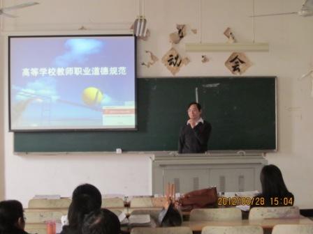 的观点。随后杨豹博士指出我们当代的“道”就是马克思主义理论,其作为科学的、民主的精神指引着高校教师们的道德规范。高校教师应该依照马克思主义的要求,用科学精神和民主精神贯彻教师的“道”,将学生培育成具有怀疑精神与逻辑精神,成为有思想的中国特色社会主义国家的建设者,而非听话的奴才。最后杨豹博士从“爱国守法”、“敬业爱生”、“教书育人”、“严谨治学”、“服务社会”、“为人师表”六个方面详细且系统地讲解了《高等禁漫天堂下载