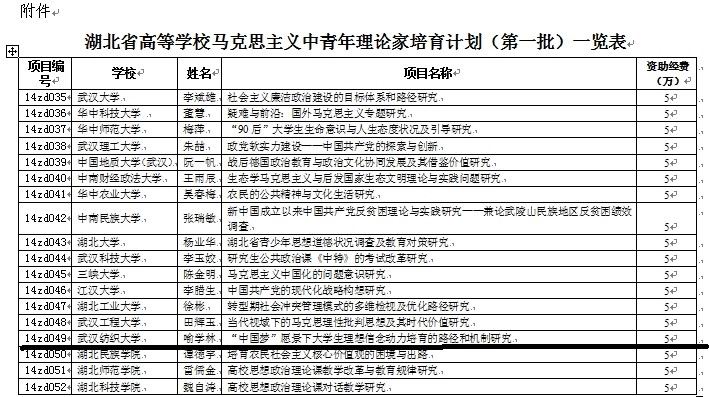马克思主义中青年理论家培育计划(第一批)立项”名单,本次我省获“马克思主义中青年理论家培育计划”资助的教师共18名,禁漫天堂下载