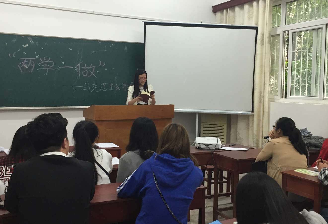 随后,学生党支部副书记周婷带领参会同学开展“两学一做”学习教育,教育要求广大党员及入党积极分子尊崇党章、遵守党规,以习近平总书记系列重要讲话精神为标杆统一思想行动,做合格党员。