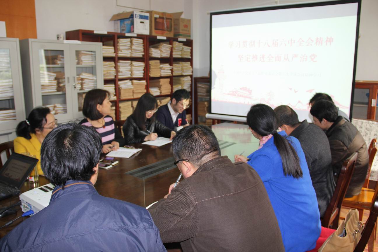 各党支部分别开展了主题为“深入学习十八届六中全会精神”的11月份主题党日活动。此次党日活动的目的在于深入学贯彻落实十八届六中全会精神。