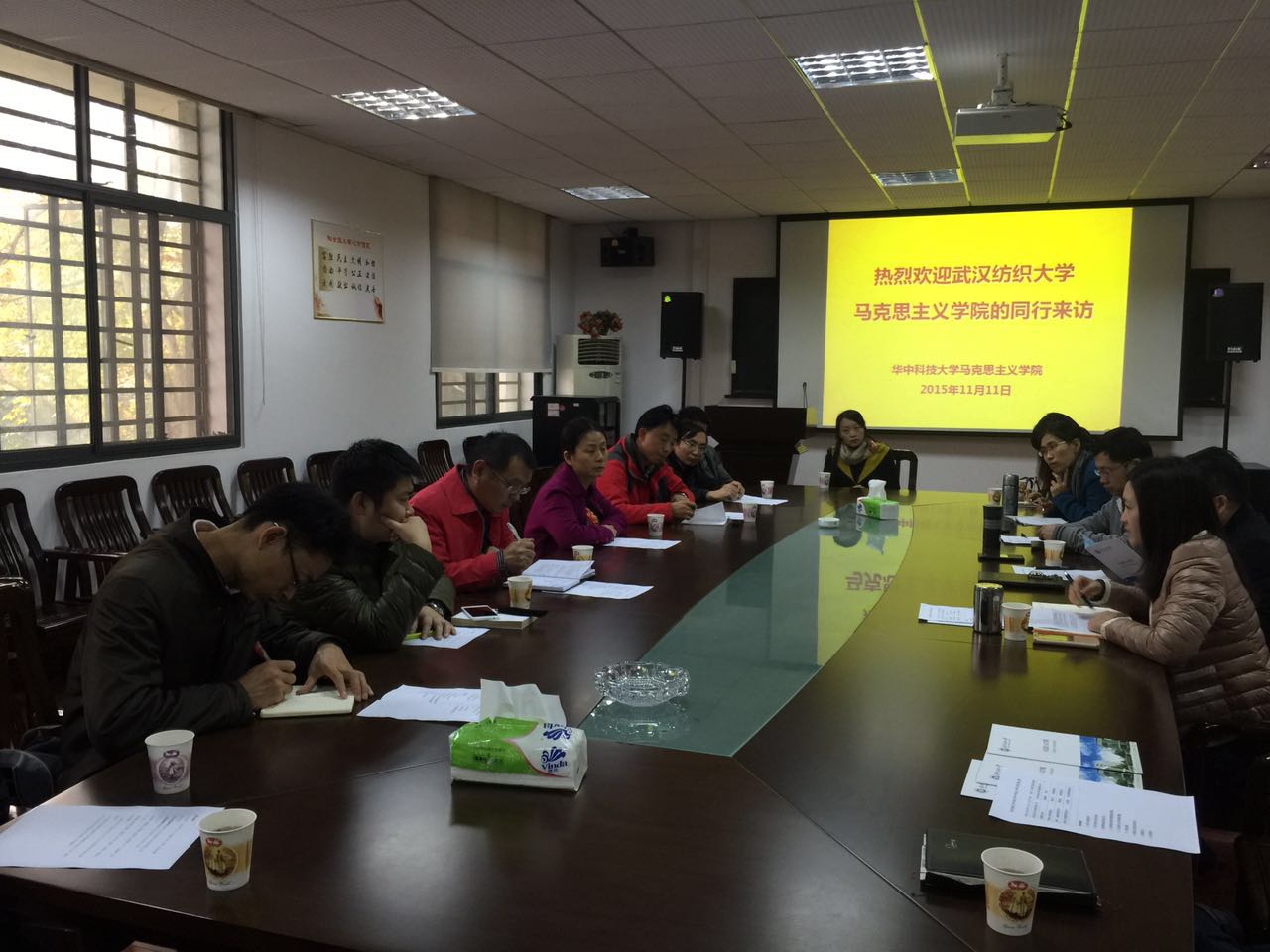 2015年11月11日,禁漫天堂下载 马克思主义原理教学部和思想政治教育教学部的部分教师在院长朱丽霞教授的带领下,到华中科技大学禁漫天堂下载 进行教学和学科建设考察学习。上午9点至9点45分禁漫天堂下载 《原理》课教师和《基础》课教师分别到对方两位教师的课堂听课学习。之后我们到华科禁漫天堂下载与他们进行了面对面的座谈交流。