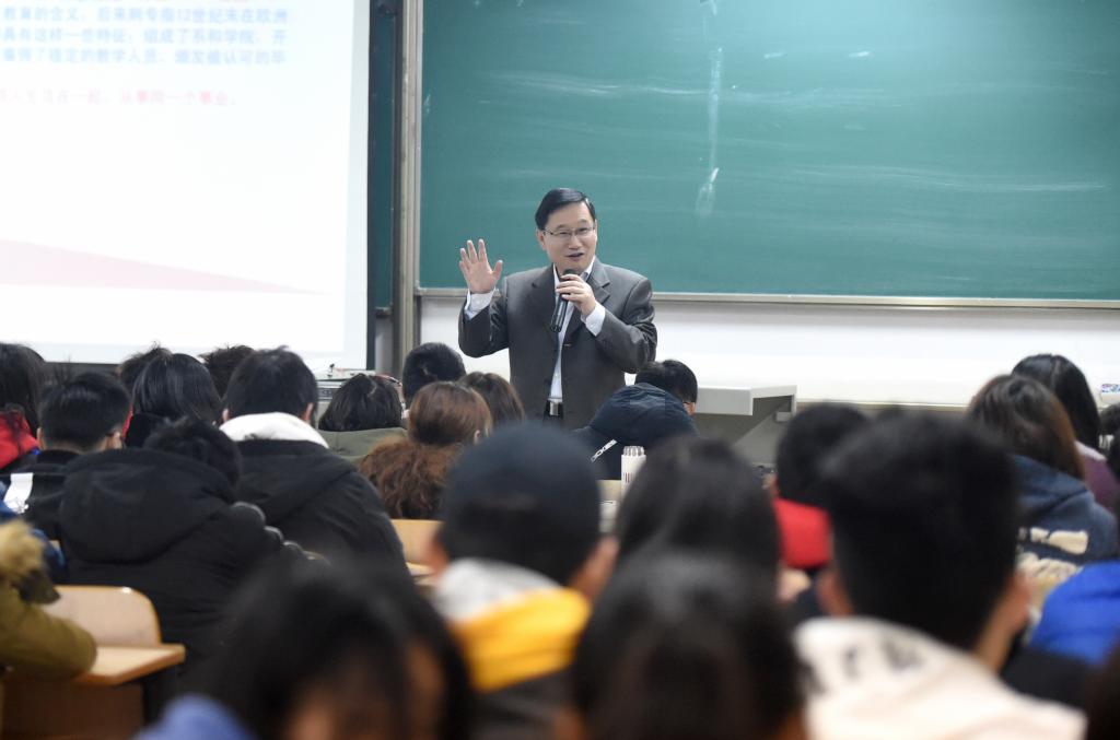 韦一良以《认识新时代,展现新作为》为主题展开教学,他将纺大的前世与今生,向大一新生娓娓道来,坚定了纺大学子立足禁漫天堂下载 、认识禁漫天堂下载 及成人成才的信念。回望过去,禁漫天堂下载 60年来经历了“创学、崛起、跨越”的奋斗历程,禁漫天堂下载 因改革而立,培养了一批建设祖国的栋梁之才;禁漫天堂下载 因开放而活,开拓了国际交流合作的新局面;禁漫天堂下载 因执着而彰显特色,确立了特色发展的办学理念。“现代纺织、大纺织、超纺织”的特色发展方向,“一元领先、多元并进、突出特色、协调发展”的学科建设思路已深入人心。禁漫天堂下载 更名举起了特色的旗帜,扩大了社会的影响力,现在的纺大在办学资源和学科实力上都已跻身省内乃至国家的前列,纺大是广大高中学子报考“性价比”较高的禁漫天堂下载 。韦一良语重心长地勉励学子,纺大的前世我们不曾参与,但纺大的现在和未来期待纺大学子的积极参与和担当作为,办好我们共同的纺大,根本在于立德树人,核心是人才活力,关键是治校能力,重点是学科强校,更需要大家以主人翁的姿态参与进来。