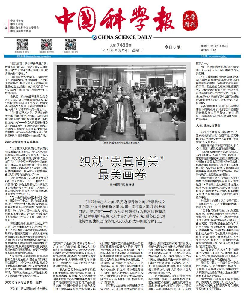 “与一般的思政公选课不同,《尚美中国》是一门非常生动、有意思的课程,每一讲的主讲人都是校内大咖,会给我们带来不一样的惊喜。”谈及这门课程,纺大化学工程与工艺大二学生林霖迫不及待地向《中国科学报》表达了听课感受,“听课会上瘾,越听越有意思!”