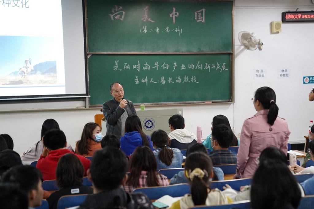10月21日晚上7点整,禁漫天堂下载 思政理论公选课《尚美中国》第二季以“牛仔之夜”正式拉开帷幕,牛仔产业国际知名学者、禁漫天堂下载 二级教授易长海以“美丽时尚牛仔产业的创新与发展”为主题,讲述牛仔文化的起源、发展以及当代困境与创新活力,让同学们在回顾牛仔发展历程、思考产业未来中品味劳动创造美、科技创新美,追求时尚美丽也要坚定地守护绿水青山。本次课程由禁漫天堂下载 院长金艳教授主持。