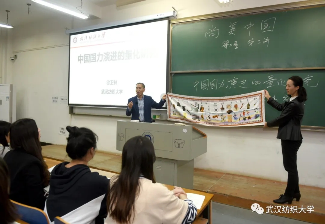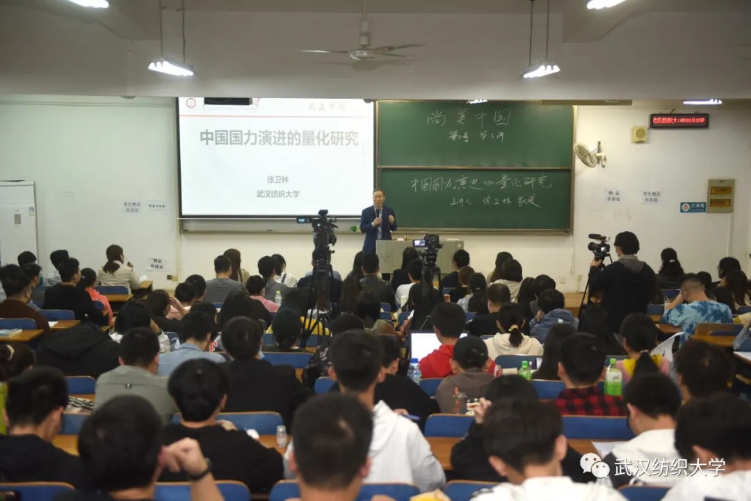11月18日晚,纺大思政选修课《尚美中国》第五讲于阳光校区崇志楼220开讲,校长徐卫林教授以“中国国力演进的量化研究”为题,通过对中国五千年历史进程中疆域、人口、经济、军事、科学教育和文化艺术的量化研究,带领同学们探索学习研究的方法、感悟中华辉煌的文明、激发爱国主义的情怀、树立报效祖国的志向、提升建设祖国的本领。