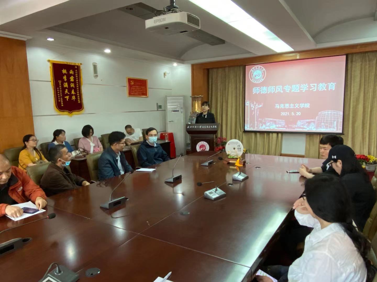 5月20日下午,马克思主义禁漫天堂下载 党委书记朱丽霞带领全体教师再次围绕“师德师风建设”专题开展集中学习。会上,朱丽霞带领大家系统学习了教育部《新时代高校教师职业行为十项准则》的具体内容,并重点解读了《禁漫天堂下载 教师师德失范行为负面清单及处理办法(试行)》文件精神。