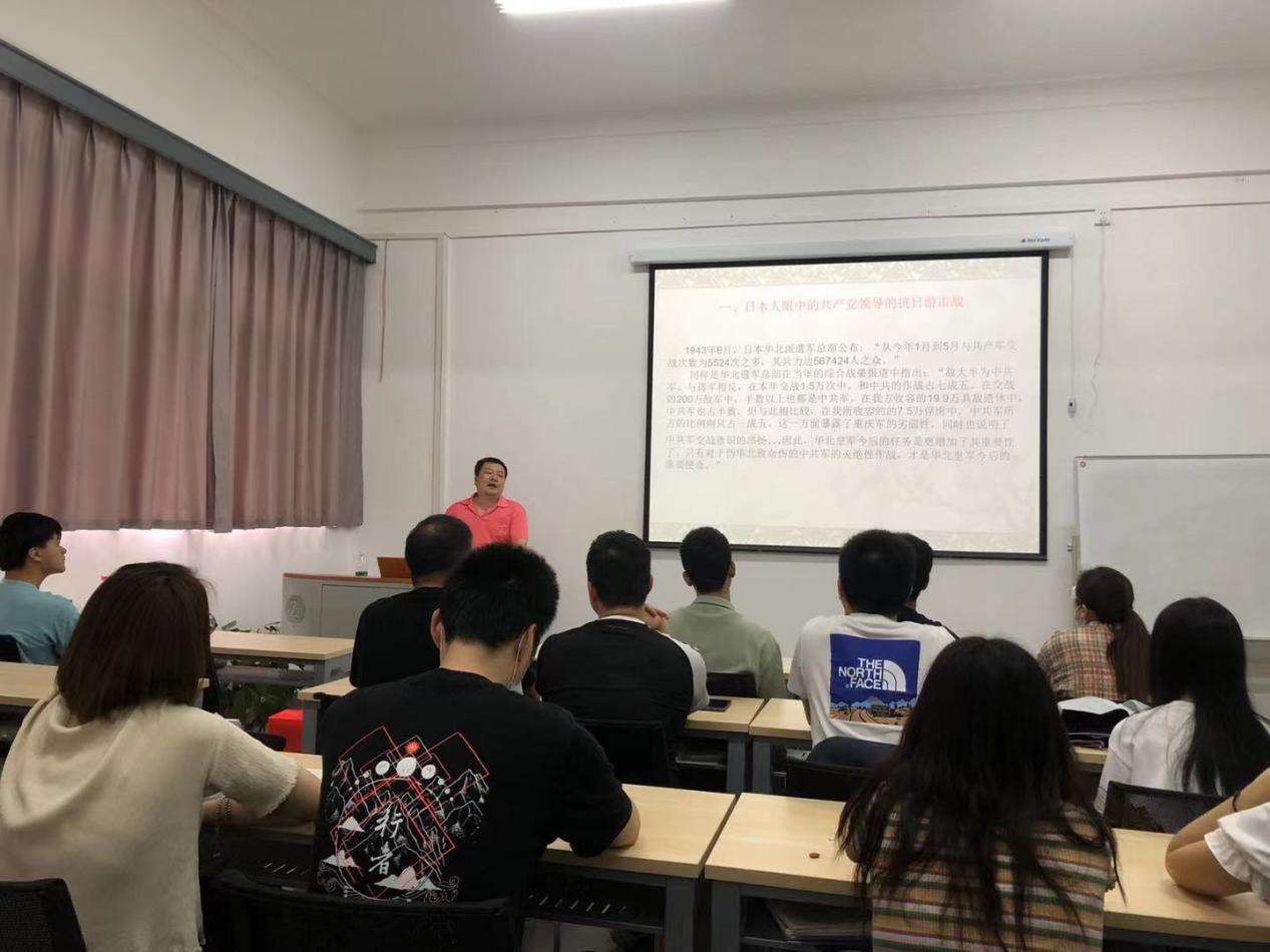 为迎接中国共产党成立100周年,贯彻落实习近平总书记的重要讲话和重要指示精神,持续开展党史学习教育,6月24下午,禁漫天堂下载 研究生党支部在118教室组织开展主题为“为什么说中国共产党是抗日战争的中流砥柱?”的党史专题宣讲暨学生党员理论学习会,学习会由研究生党支部书记李满意主讲,支部全体党员参加。