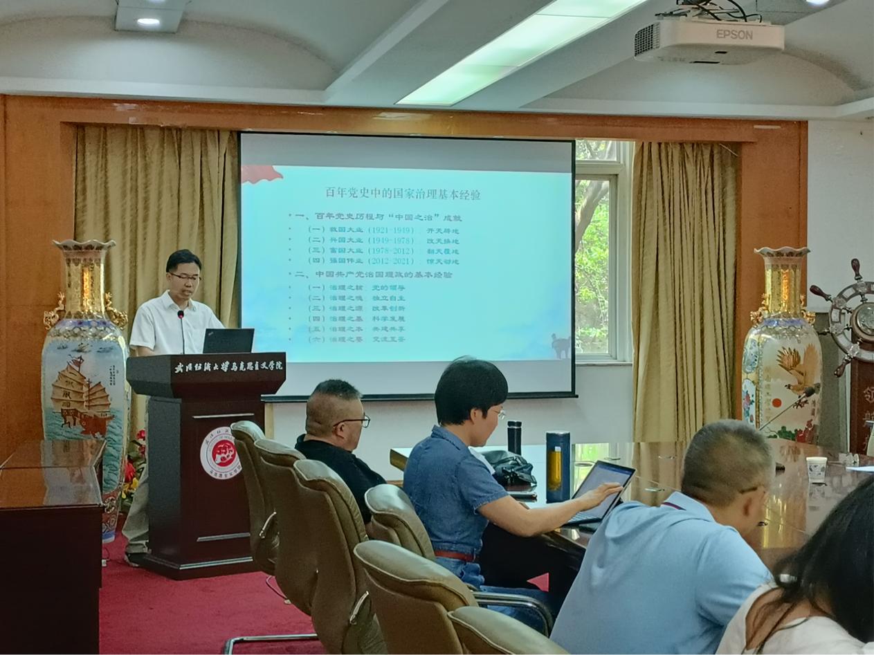 王海燕教授随后作了题为“百年党史中的国家治理基本经验”的学术报告。他将百年党史的光辉历程划分为救国大业、兴国大业、富国大业、强国伟业等四个历史阶段,将“中国之治”取得的显著成就概括为开天辟地、改天换地、翻天覆地、惊天动地等四个方面。通过总结中国共产党治国理政的基本经验,他认为党的领导是治理之核,独立自主是治理之魂,改革创新是治理之源,科学发展是治理之基,共建共享是治理之本,交流互鉴是治理之要。