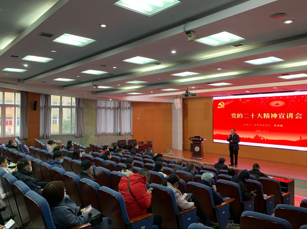 黄国辅全面介绍、系统阐释了党的二十大的主要内容、重大成果、重要论断、重大部署和重大意义。他还特别以“两个结合”为切入点,通过梳理党的百年奋斗历程的重大会议、重大事件和重大成就,通过列举和阐释中华优秀传统文化所蕴含的深刻思想、哲学智慧和丰富价值,系统阐释了马克思主义在中国创新发展的内在机理,号召广大教职工切实增强政治自觉、思想自觉、行动自觉,把习近平新时代中国特色社会主义思想、把党的二十大精神贯彻落实到岗位和工作中。