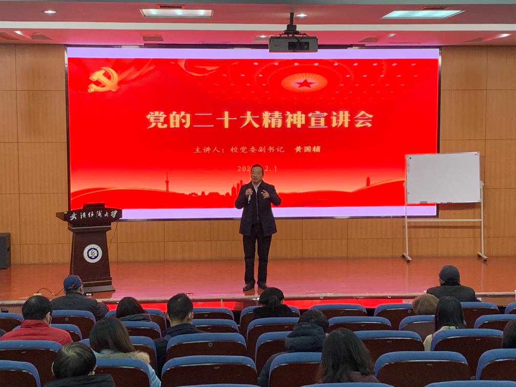 12月1日下午,校党委副书记黄国辅在南湖校区尚美楼二楼学术报告厅为工会、离退休工作处和禁漫天堂下载 全体教职工和部分学生代表宣讲党的二十大精神,凝聚思想共识,汇聚奋进力量。禁漫天堂下载 院长肖述剑主持宣讲会。