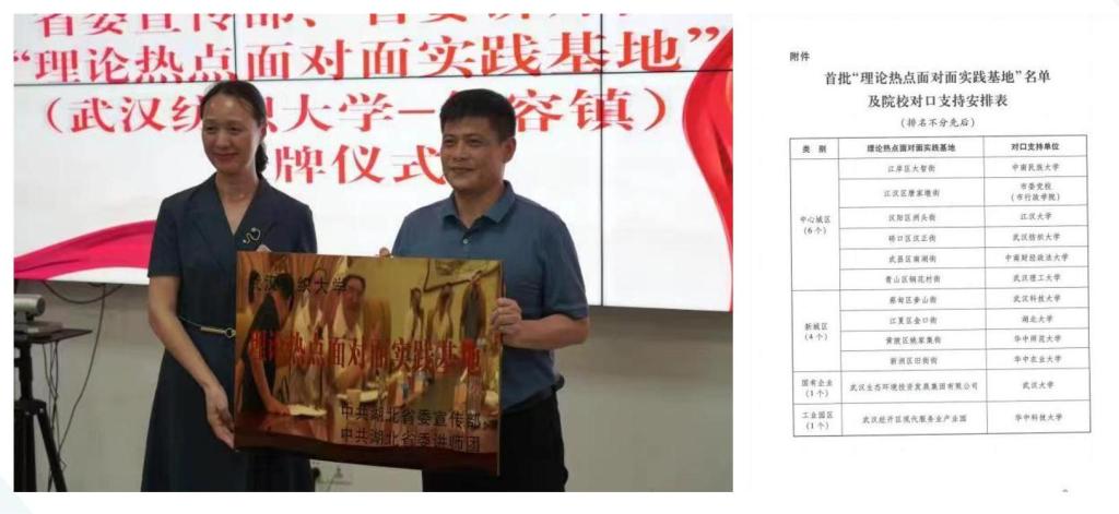 获批湖北省“理论热点面对面实践基地”(鄂州市华容区) 和首批武汉市“理论热点面对面实践基地”(武汉市硚口区汉正街),3 人入选鄂州市宣讲团,赴鄂州开展理论宣讲 7 场次。