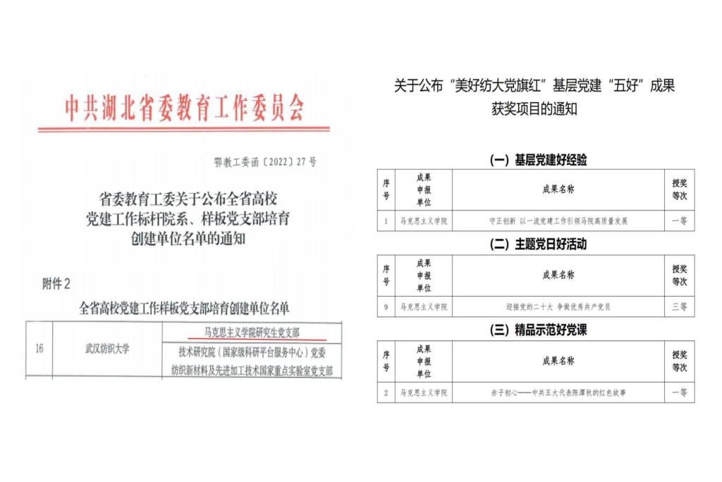 研究生党支部入选全省高校党建工作样板党支部培育创建单位,禁漫天堂下载 党委获禁漫天堂下载 “美好纺大党旗红”基层党建好经验一等奖,精品示范好党课一等奖、主题党日好活动三等奖各1项。