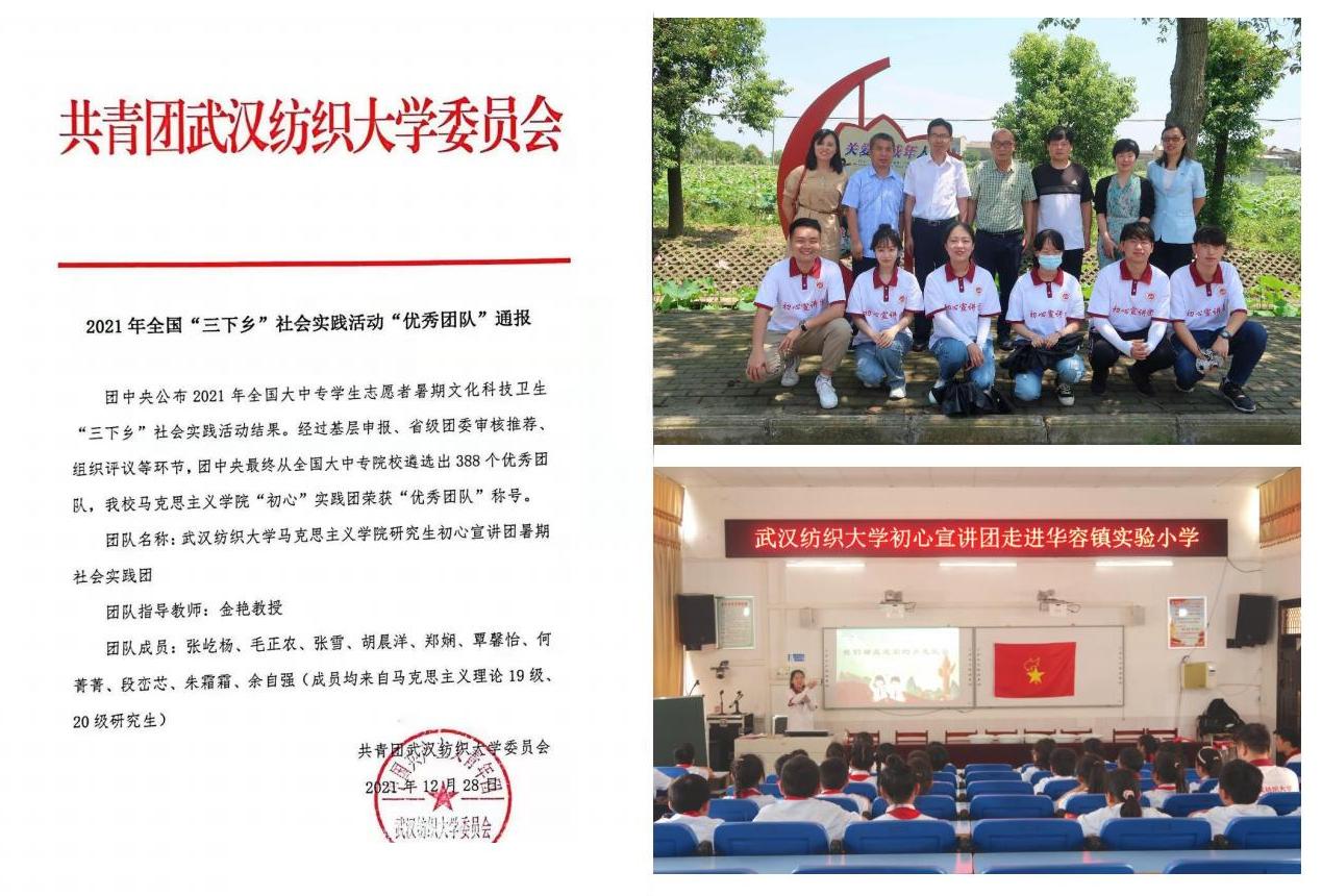 “初心”实践团荣获2022-2023年度湖北省青年文明号创建集体,受到多家媒体关注;团队成员获“互联网+”创新创业大赛湖北省银奖,专业竞赛奖多项。