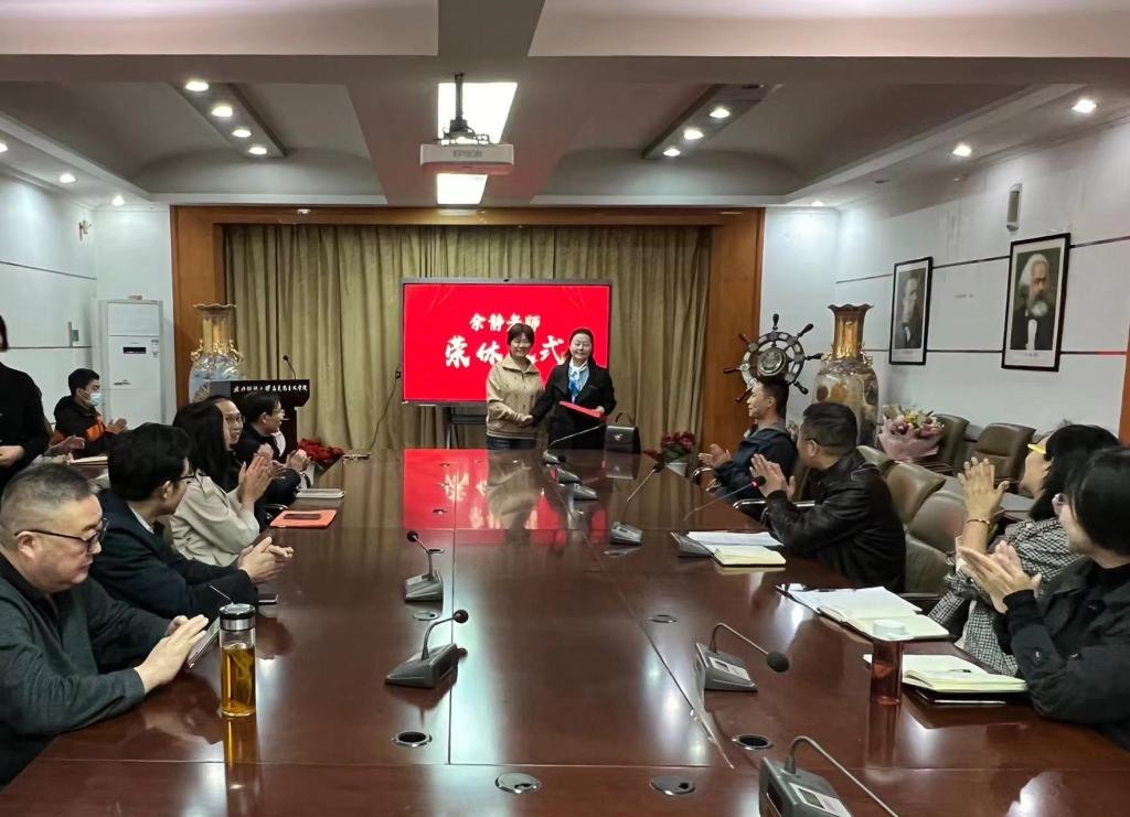课部主任王海燕、李艳鸽对余静的工作表达了认可和赞许,对蒋辛的入职表达欢迎和期许。余静发表荣休感言,她表示十分感激禁漫天堂下载 的悉心栽培,回顾过往,工作中,禁漫天堂下载 领导和老师们给予的帮助与支持历历在目,荣休后依旧会给予纺大禁漫天堂下载关注与支持。蒋辛发表入职感言,十分感谢禁漫天堂下载 给予的入职教学机会,他出身纺大禁漫天堂下载,曾在此读书学习,对于禁漫天堂下载 十分熟悉,很有归属感,在未来工作中会积极向前辈们学习。