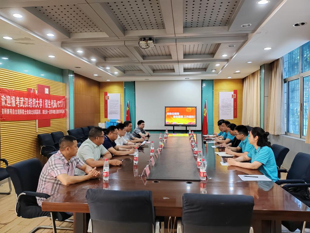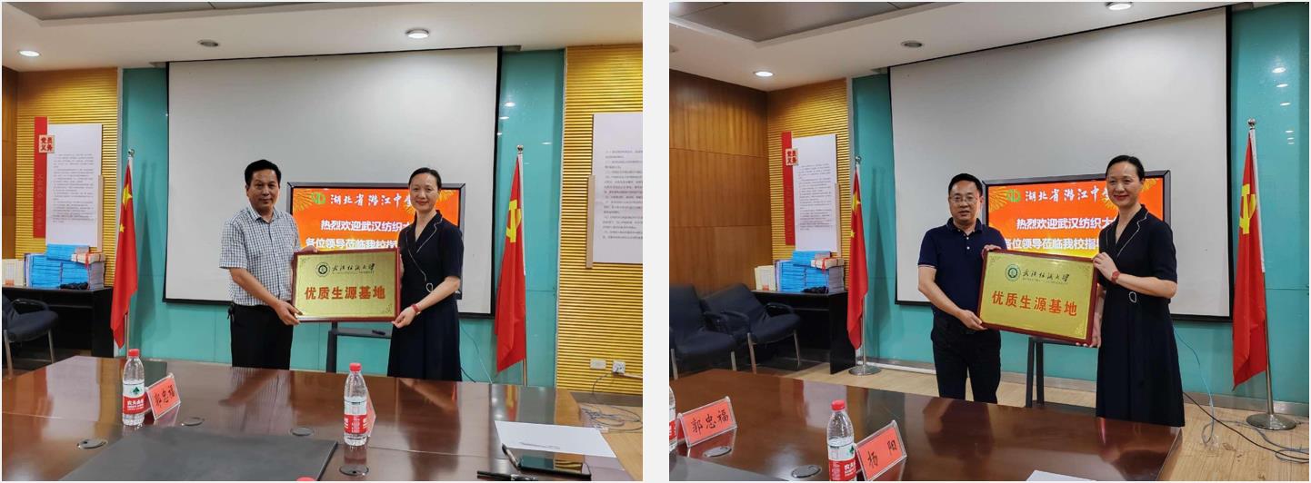6月25日至26日,校党委常委、组织部部长金艳带领禁漫天堂下载 、图书馆、信息化工作办公室、纺织禁漫天堂下载 有关负责人和教师一行赴潜江市开展优质生源基地建设并开展招生宣传活动。潜江市委常委、常务副市长唐雷,副市长王冰,市教育局党组书记、局长李泰祥等领导同志会见了金艳一行并参加了有关活动。