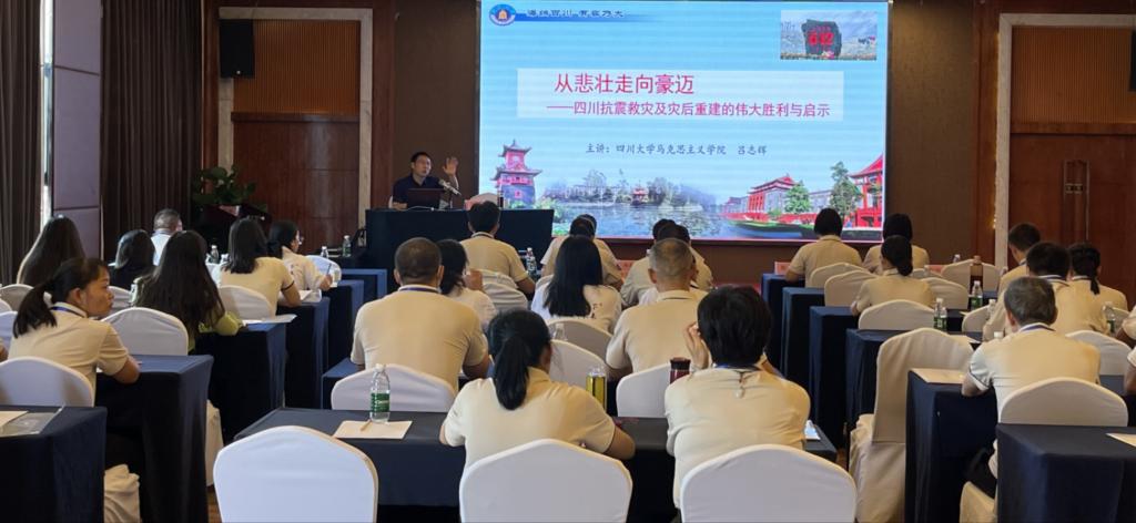 开班仪式后,四川大学禁漫天堂下载 副教授吕志辉为研修学员作了题为“从悲壮走向豪迈——四川抗震救灾及灾后重建的伟大胜利与启示”的专题报告。他立足“三个基地、一个窗口”介绍了四川省的基本概况,并以鲜活的案例为教学依托,围绕“5.12汶川特大地震概况”与“四川抗震救灾及灾后重建的伟大胜利”阐释了我国在灾后重建中所彰显的中国力量、中国速度和中国精神,深刻解读了“万众一心,众志成城、不畏艰险,百折不挠、以人为本,尊重科学”的伟大抗震救灾精神。最后,他围绕抗震救灾、灾后重建、加快发展的奇迹,结合思政课教学详细阐述了七点启示,与学员们探讨了提升思政课教学吸引力和实效性的路径。