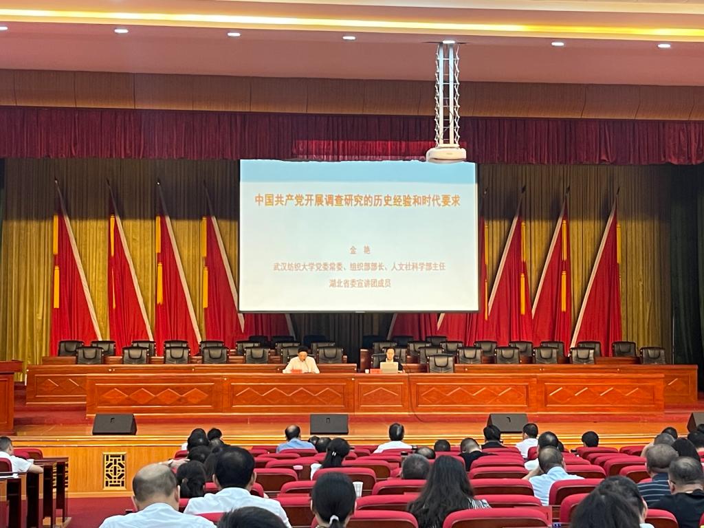 金艳以《中国共产党开展调查研究的历史经验和时代要求》为主题,从调查研究的内涵与重要意义、调查研究应坚持党的群众路线、调查研究应坚持实事求是、调查研究应坚持问题导向、调查研究应坚持攻坚克难、调查研究应坚持系统观念等六个方面,深度解读了我们党开展调查研究的历史经验和时代要求。她具体讲授了调查研究的五条经验,强调调查研究一是应坚持党的群众路线,作为领导,要深入去倾听群众的诉求与期盼、要虚心向群众请教、向群众调查才能客观地全面地了解事物;二是应坚持实事求是,从不唯上、不唯书、只唯实、交换、比较、反复进行细致地讲解;三是应坚持问题导向,调查是解决问题的基本方法;四是应坚持攻坚克难,坚持正确的态度和恰当的方法;五是应坚持系统观念,这是大兴调查研究的基本思想方法。