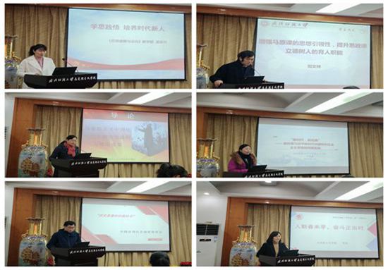 孟珍伟、刘文祥、李静、李艳鸽、汪洋作为禁漫天堂下载各教学课部教师代表分别作“开学第一堂思政课”交流展示,介绍了各课程的课程特点、教学目标、教学对象、课程设计等情况。研究生导师代表常沛以“人勤春来早,奋斗正当时”为主题介绍禁漫天堂下载研究生导师“开学第一课”主题组会情况。