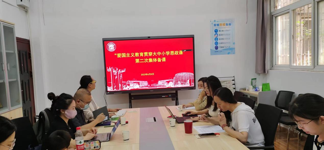 本次集体备课会是对第一次集体备课会的深化与聚焦,围绕“爱国主义教育贯穿大中小学思政课”大中小学各学段的老师进行了教学展示。汇报主题分别是:陈春兰讲授《大历史视野下的爱国主义教育》,许桂林讲授《扬改革创新精神,助新时代爱国主义教育》,彭阳慈航、吴志杰讲授《Love my country, chase my dream 爱吾之国,逐吾之梦》,张丹讲授《以信仰之光,照亮设计之路》,黄桂林讲授《赓继红色血脉 争做爱国好少年》,李慧利讲授《培养集体主义精神 厚植爱国主义情怀》。