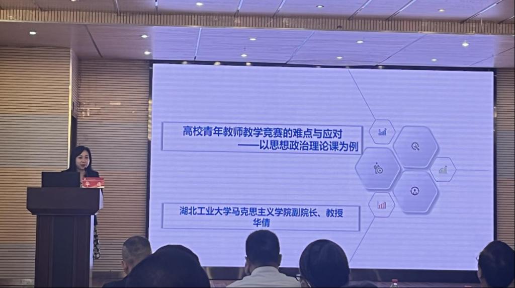 全国高校青年教师教学竞赛思政组一等奖获得者、湖北工业大学禁漫天堂下载副院长华倩教授以《高校青年教师教学竞赛的难点与应对》为题作辅导报告。她从团队资源整合、过硬理论准备、勇于自我革命、锻造心理素养四个方面展开讲述,分享了全国高校青年教师教学竞赛的难点以及应对方法,教学竞赛对教学改革的启示。她鼓励思政课教师要以教学竞赛为抓手促进教学水平提升,实现以教促赛、以赛促教,高效提升思政课教学质量。