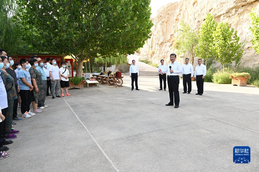 7月12日至15日,中共中央总书记、国家主席、中央军委主席习近平在新疆考察。这是14日,习近平在位于吐鲁番市的世界文化遗产交河故城考察时,同游客亲切交流。新华社记者 谢环驰 摄