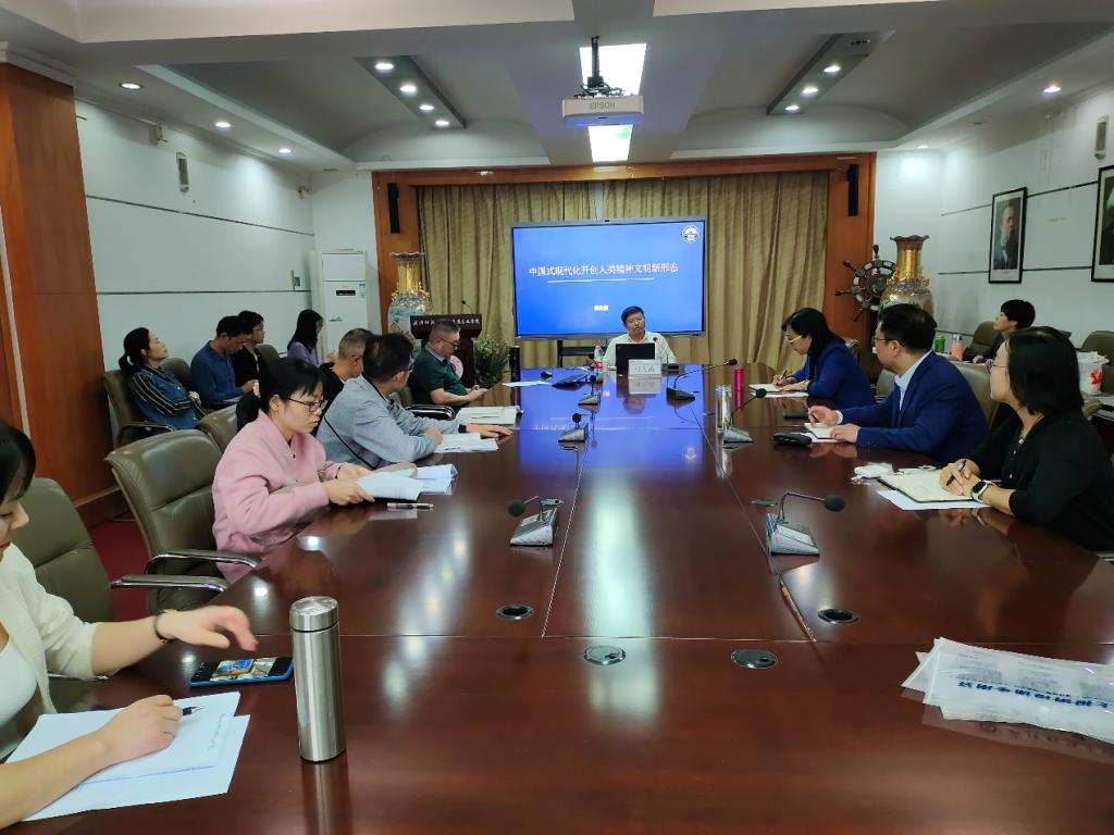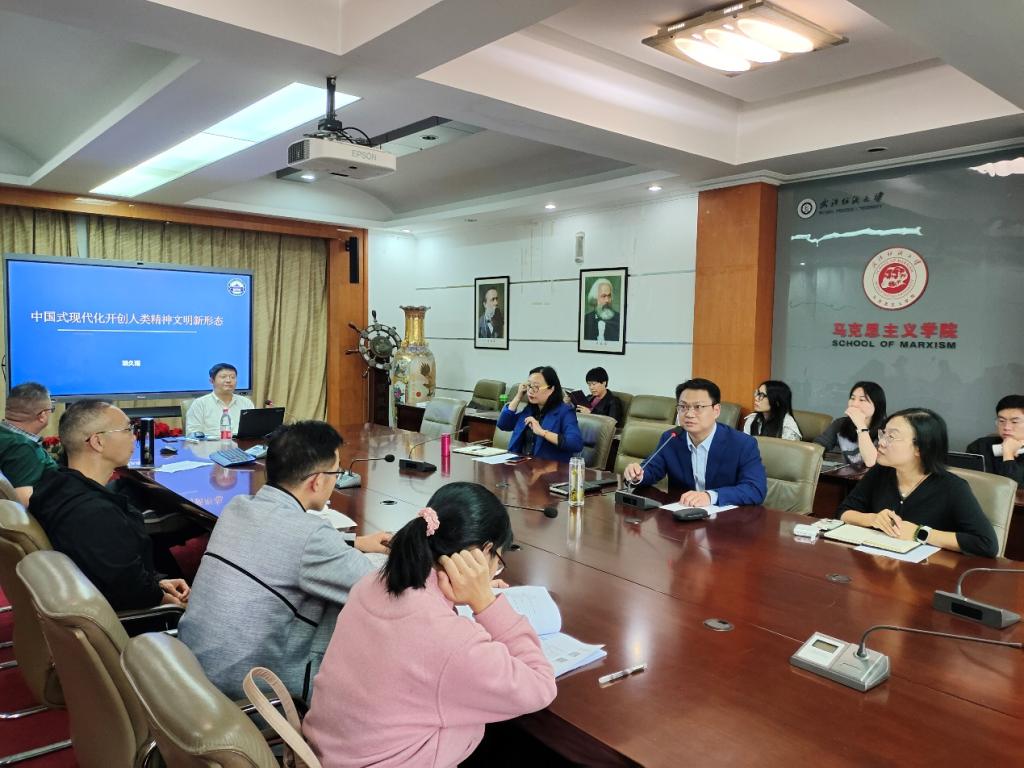 10月12日下午,禁漫天堂下载 在201会议室举办2023年第8期阳光论坛。论坛特邀武汉大学禁漫天堂下载 教授、博士生导师项久雨以“中国式现代化开创人类精神文明新形态——兼谈学术研究”为题作学术报告。论坛由禁漫天堂下载 院长肖述剑主持,禁漫天堂下载 全体师生参会。