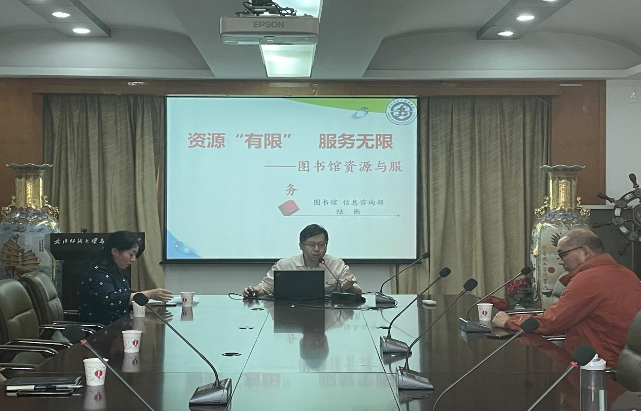 图书馆副馆长何为对图书馆的建筑面积、藏书体系、管理模式、图书馆提供的资源荐购、读者培训、阅读推广、自主学习等服务一一进行了介绍。