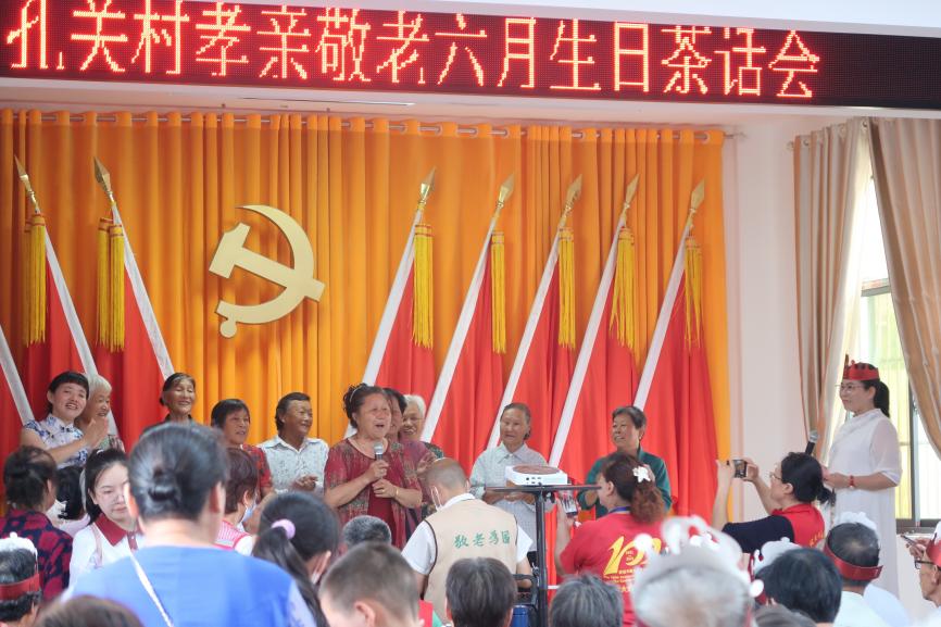 在段店镇孔关村党群服务中心,实践团成员见证了村委会为村里65岁以上老人们举行的集体生日会、践行孝亲敬老的传统美德,从老人们的笑靥中感受到美丽乡村精神文明建设的成果。据了解,孔关村每个月都会开展这样的孝亲敬老生日茶话会并组织精彩纷呈的表演。