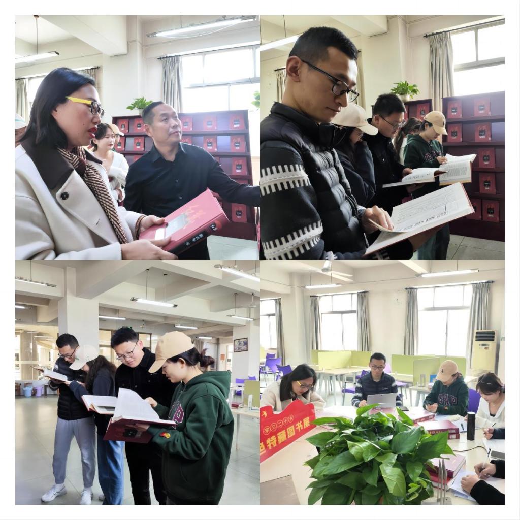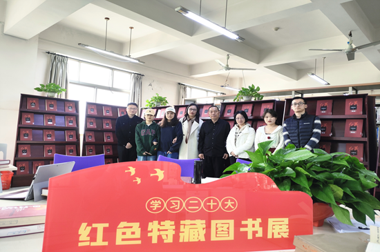 适逢图书馆举行“奋斗百年路,启航新征程”红色特藏图书展,进入阅览室后,刘艳首先介绍了所展的《红藏》系列丛书并对图书馆此次特展表示感谢。师生浏览翻阅展陈书籍后,在红色特藏的书海中开启了本次导学思政活动。
