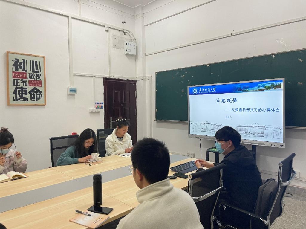 2023年3月2日晚,禁漫天堂下载 开展学生干部宣传工作培训会,禁漫天堂下载 2021级研究生杨晨光以“学思践悟”为主题为大家分享在禁漫天堂下载 党委宣传部实习期间心得。禁漫天堂下载 研究生会全体成员和初心实践团宣传组成员参加培训。