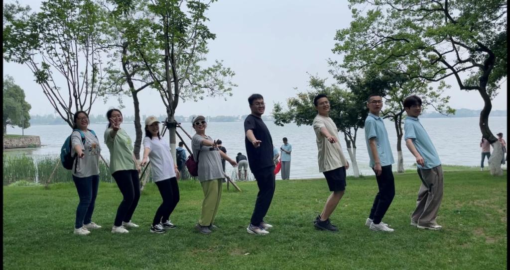 (学子在东湖畔趣味合影)