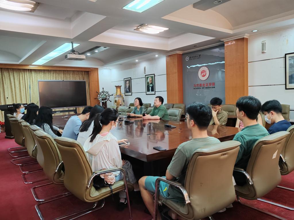 肖述剑对同学们暑假科研与生活、就业目标选定等关心的内容开展答疑。他提出同学们在留校期间,要有高度的自律、自醒和自觉,形成学习小组,共同探讨学术问题的时候,互相照应,利用暑期这一集中时间段,静下心来撰写论文和备考各类考试,祝大家度过一个平安、高效的暑期。