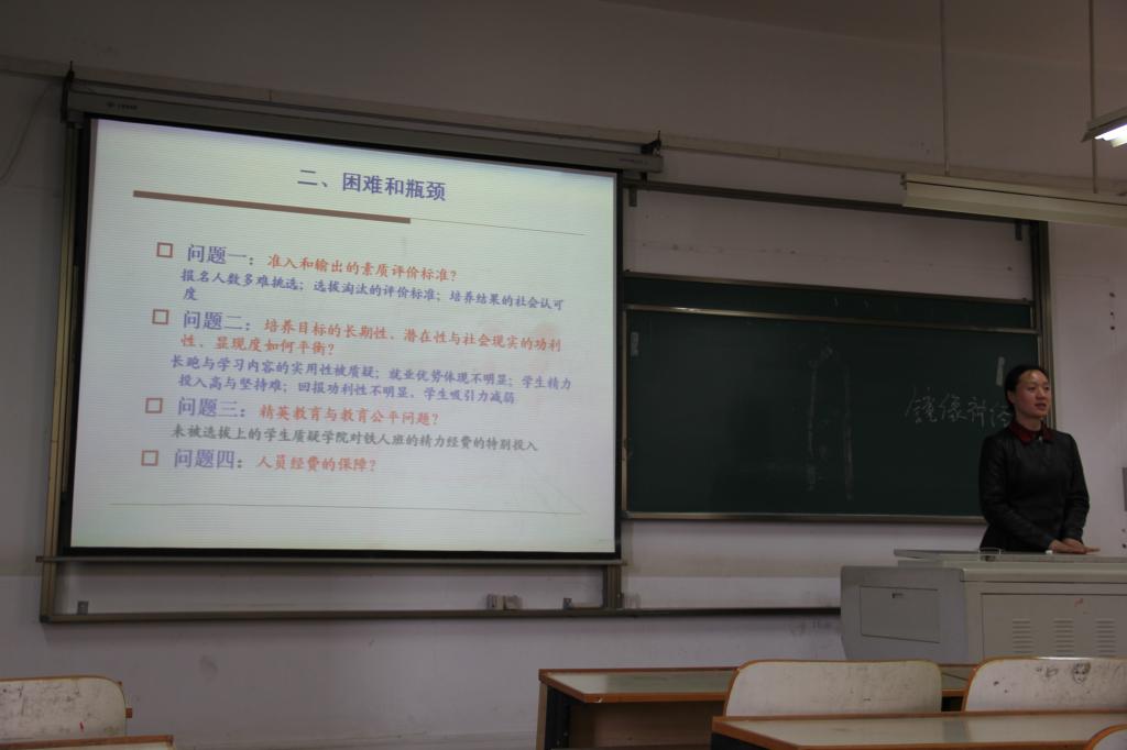 学工部金艳部长指出,“铁人班”创办已走过十个年头,取得成绩和赞誉的同时也面临着许多困境和问题,这其中包括“铁人”精神的时代价值界定,准入和输出的素质评价标准如何确定评价,培养目标的长期性、潜在性与社会现实的功利性、显现度如何平衡,精英教育与教育公平问题和人员经费的保障等具体问题,希望在座的专家学者能给予理论实践指导。