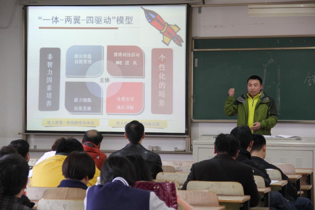 首先机械禁漫天堂下载 辅导员王双喜老师介绍我校“铁人班”模式这一具体学生工作案例。“铁人班”以行为养成教育和专业能力培养为教育理念,通过社团形式与行政班相结的组织形式,构成了“一体-两翼-四驱动”的具体培养模式,是素质教育创新工程的产物,精英人才培养模式实践载体,素质教育与创新能力的有机结合。自05年创办以来,取得了学生人文素养得到提高、实践动手能力增强、创新能力表现突出、就业能力显著提升的明显成效,社会影响反响强烈。新闻联播、中国纺织报、湖北日报、湖北电视台、湖北共青团、荆楚网、凤凰网等国内知名媒体都曾做过专门报道,是我校学生工作的亮点工程、品牌工程。