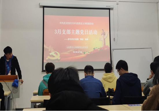 研究生党支部奏唱国歌,重温入党誓词,围绕2023年“两会”精神进行了深入的学习。研究生张屹杨同志认为,学习领会全国两会精神,最重要、最根本、最核心的就是要深入学习领会习近平总书记在两会期间的一系列重要讲话精神,吃透精神实质,把握核心要义,加快推进中国式现代化建设,团结奋斗,开拓创新。在新征程上作出无负时代、无负历史、无负人民的业绩,为推进强国建设、民族复兴作出我们这一代青年的应有贡献。