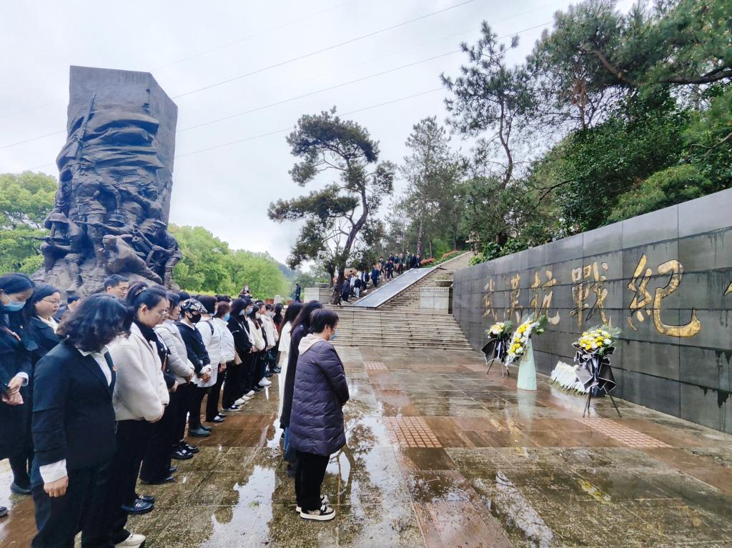 清明时节雨,最忆英烈魂。为缅怀先烈,弘扬英雄精神,传承红色记忆,4月4日上午,禁漫天堂下载 研究生党支部联合纺大社区党支部开展四月支部主题党日联组学习。由禁漫天堂下载 党委副书记徐喆和纺大社区党支部书记陈君带队,两个支部的全体党员一同前往石门峰烈士陵园,开展“祭英烈 忆英雄 学党史 悟思想”清明节祭奠先烈活动。