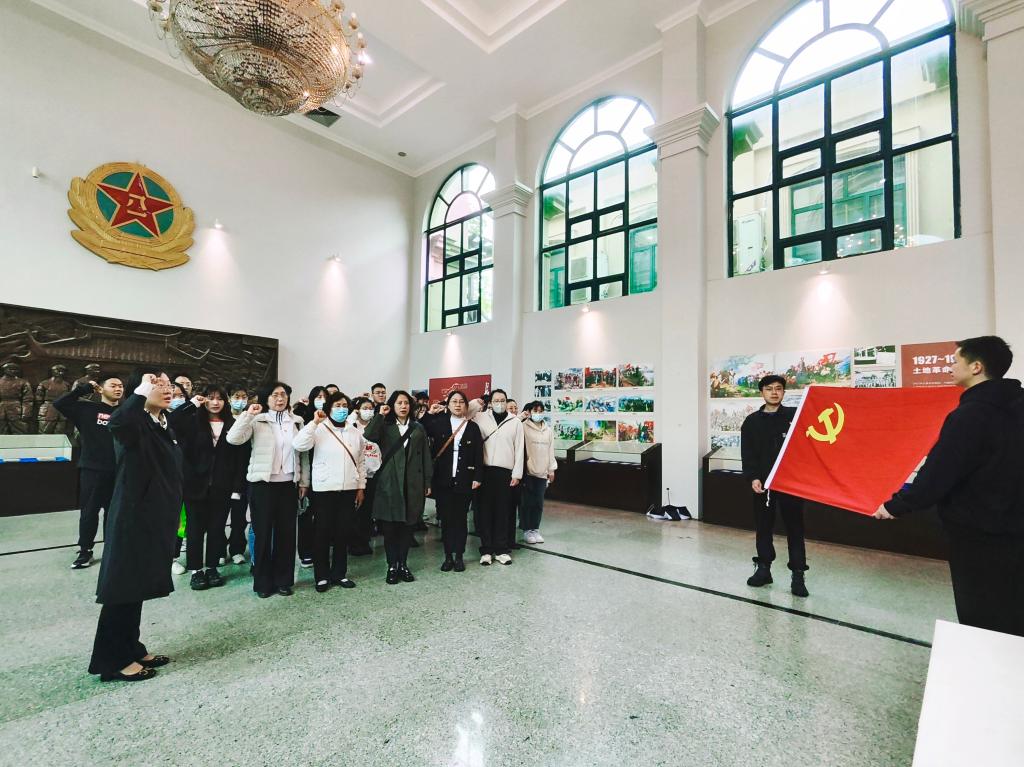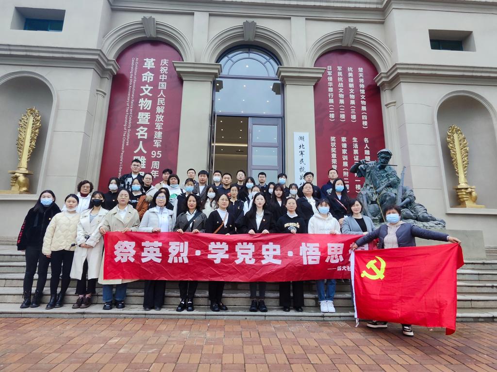 祭扫活动现场庄严肃穆,代表们的发言慷慨激昂、发人深省,党员们满怀心中热血,依次向先烈们敬献鲜花。最后,大家在讲解员的带领下参观了湖北军民抗战博物馆,进一步了解革命先烈们的生平事迹,并在此重温入党誓词。