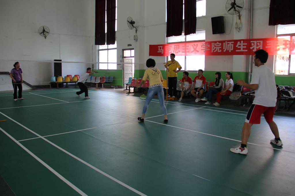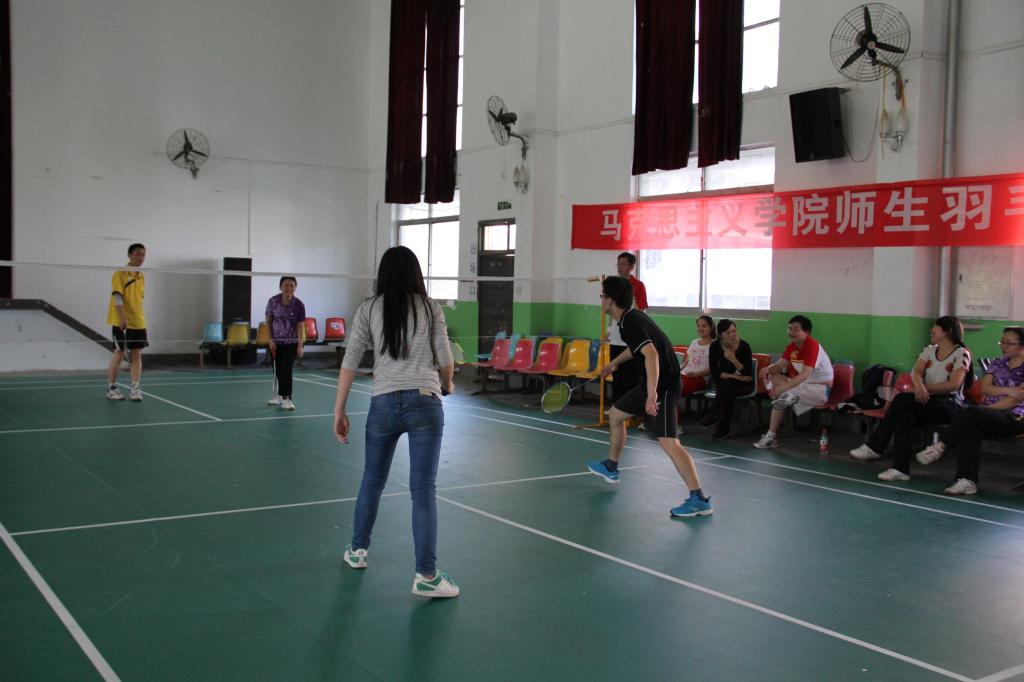赛场上的每个选手都积极认真,有时手腕轻轻转动带动球拍挑出一个极具技巧性的网前小球,有时平地起跳凶猛的扣杀让对手措手不及……围观的师生也是充满激情,或因为一个失误唏嘘不已,或因为一个完美的好球鼓掌尖叫。